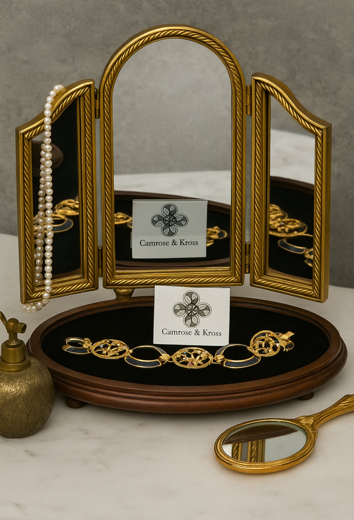 The Camrose & Kross Jackie Kennedy Replica Bracelet faithfully captures the elegance of the iconic First Lady’s style. Expertly crafted with meticulous attention to detail, this bracelet showcases timeless sophistication through its classic design and refined craftsmanship, making it a distinguished accessory for any occasion. Its replica status honors Jackie Kennedy’s enduring legacy in fashion, perfect for collectors and enthusiasts alike seeking a piece of history in wearable form. Vintage 80's Gold Plated